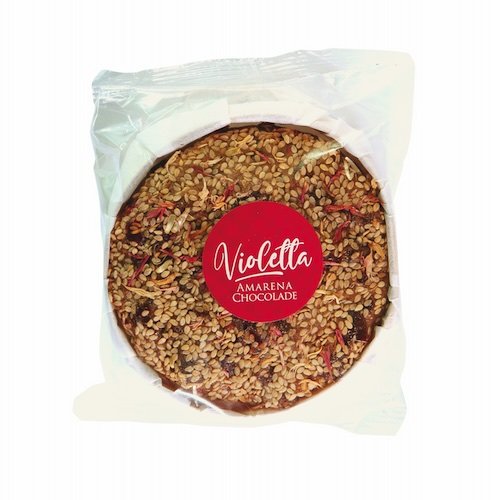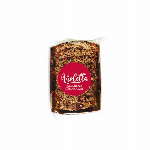Violetta est un pain aux fruits, cuit dans un moule en bois, qui se distingue par son mélange de fruits, de noix et de chocolat. Le goût raffiné de ce pain se marie bien avec des fromages doux comme le brie, mais il peut également être dégusté avec des fromages plus corsés pour les amateurs.